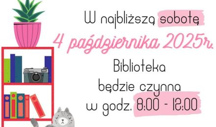 Miłośników książek zapraszamy w sobotę do Miejskiej Biblioteki Publicznej w godzinach od 8:00 do 12:00.