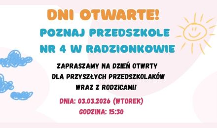 Przedszkole Nr 4 zaprasza przyszłych przedszkolaków wraz z rodzicami na dzień otwarty.