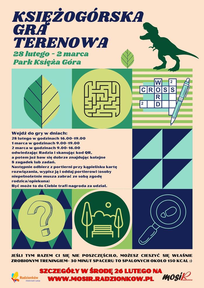 Miejski Ośrodek Sportu i Rekreacji zaprasza w weekend na Księżogórską Grę Terenową. Wejdź do gry odwiedzając Radzia i skanując kod QR.
