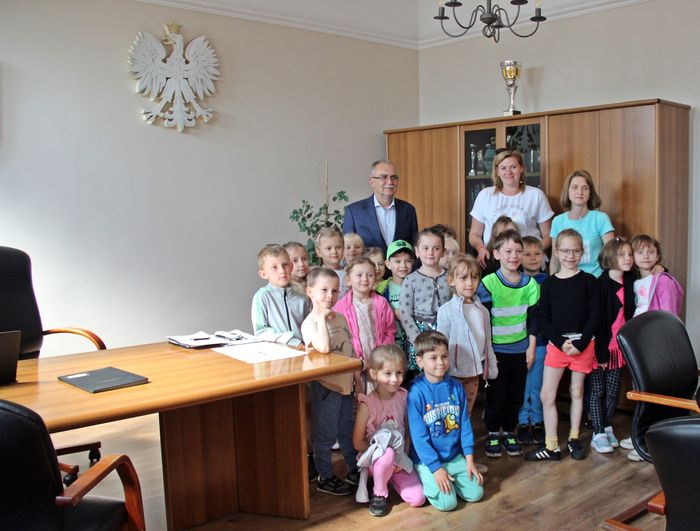 Dzisiaj grupa "Nutki" z Przedszkola "Skrzat" odwiedziła Urząd Miasta.
