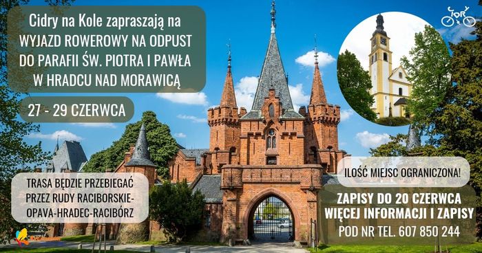 Stowarzyszenie "Cidry na kole" zaprasza na wyjazd rowerowy na odpust do Hradca nad Moravici, który odbędzie się w dniach 27 - 29 czerwca.