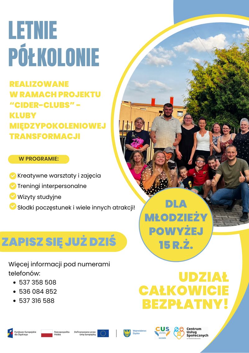 Centrum Usług Społecznych w Radzionkowie zaprasza na bezpłatne półkolonie dla młodzieży powyżej 15.