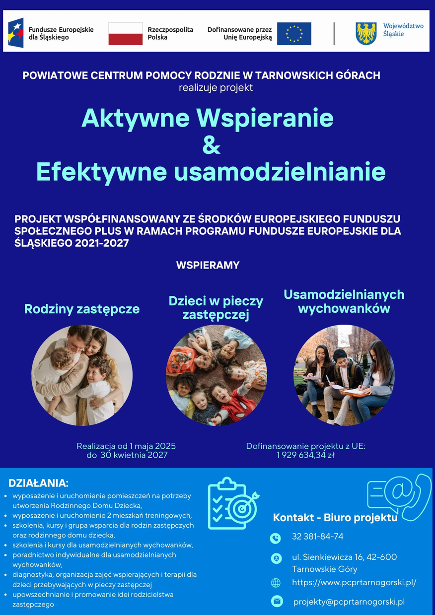 Powiatowe Centrum Pomocy Rodzinie w Tarnowskich Górach realizuje projekt "Aktywne Wspieranie & Efektywne Usamodzielnianie".