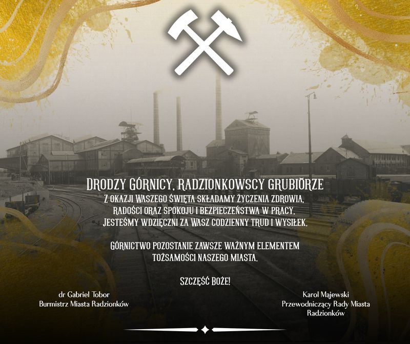 Drodzy Górnicy, radzionkowscy grubiorze, z okazji Waszego święta składamy życzenia zdrowia, radości oraz spokoju i bezpieczeństwa w pracy.