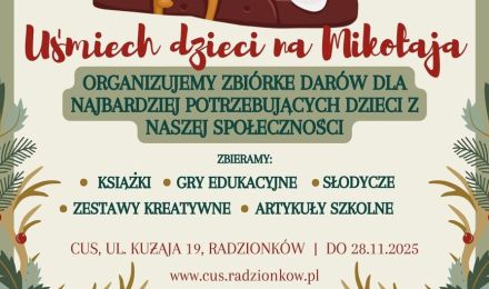 Centrum Usług Społecznych prowadzi zbiórkę darów dla najbardziej potrzebujących dzieci z naszego miasta. Wśród potrzebnych rzeczy znajdują się m.in. książki, gry i artykuły szkolne.