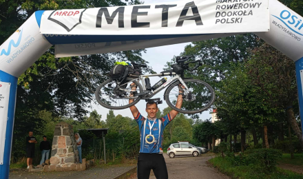 Mieszkaniec Radzionkowa Krzysztof Pakuła na mecie Maratonu Rowerowego Dookoła Polski!