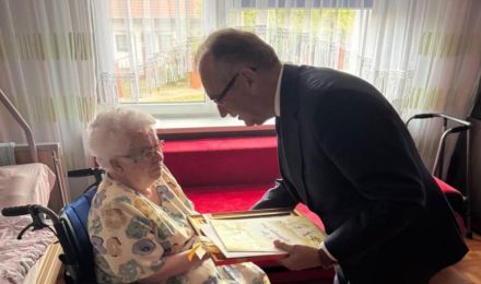 Dzisiaj, z okazji setnych urodzin Pani Marii Wrodarczyk, Burmistrz Miasta Radzionków Gabriel Tobor oraz Grzegorz Szeremeta - Zastępca Burmistrza Miasta, złożyli Jubilatce wizytę.