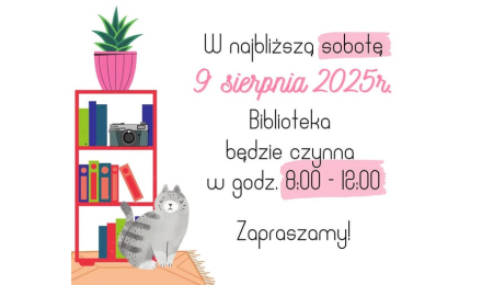 Miłośników książek zapraszamy w sobotę do Miejskiej Biblioteki Publicznej w godzinach od 8:00 do 12:00.